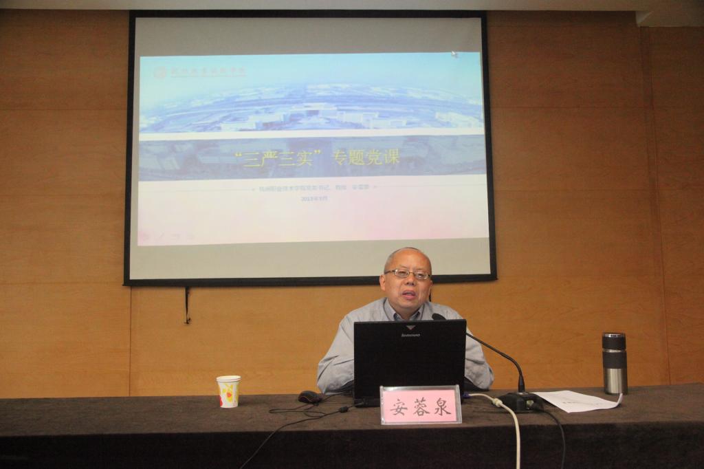 5月27日下午,校党委召开“三严三实”专题党课暨专题教育部署会,校领导班子成员、全体处级干部、支部书记到会听课。党课由党委书记安蓉泉主讲,党委副书记赵一文主持并做工作部署。