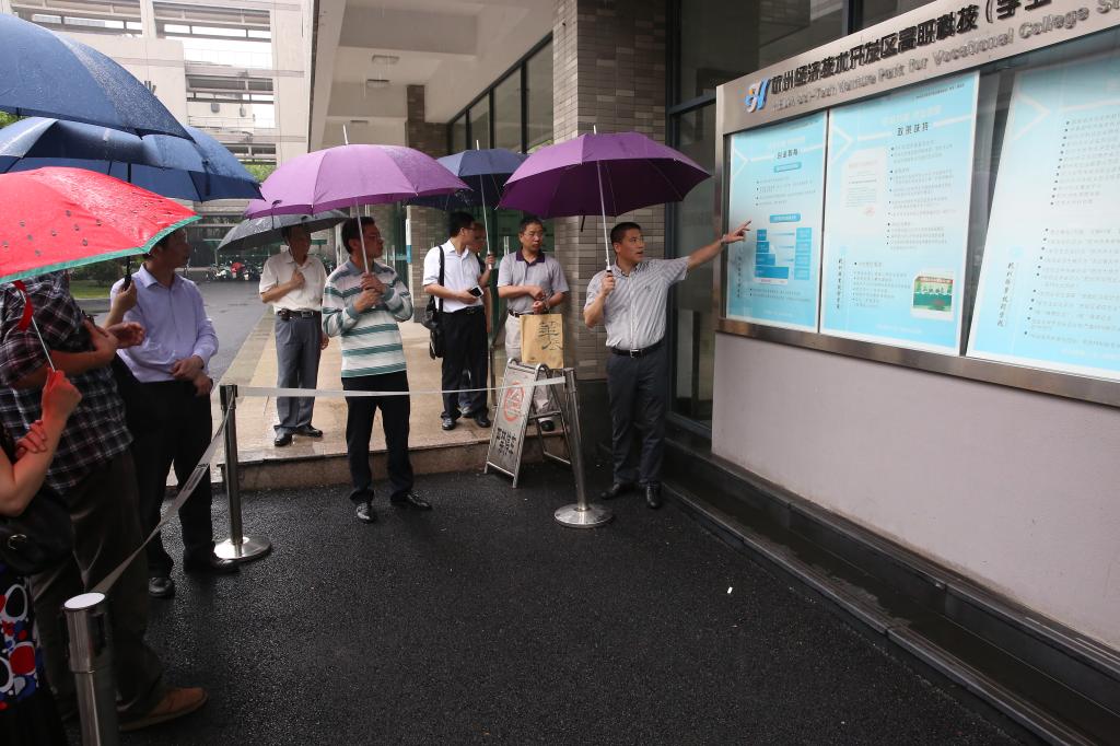林松柏一行在陈加明的陪同下参观了友嘉机电学院、学校实训中心暨杭州市公共实训基地、达利女装学院、电梯实训基地和高职学生创业园,实地考察了我校的校企共同体建设以及探索“混合所有制”、“现代学徒制”的具体情况。
