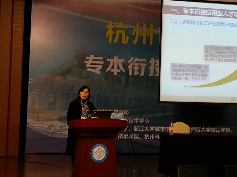 下午,7所市属院校负责人做了交流报告。许淑燕代表我校进行了题为《杭州职业技术学院专本衔接应用型人才培养的思考》的主题报告,重点交流了我校在本科层次应用型人才培养方面的认识和设想。
