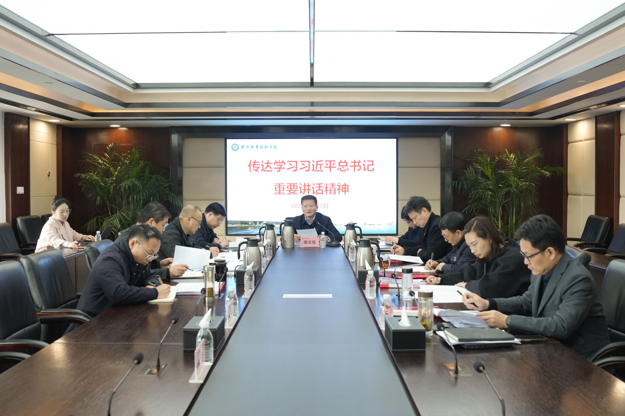 3月7日上午,学校召开党委会“第一议题”学习会,认真传达学习习近平总书记在参加十四届全国人大三次会议江苏代表团审议时的重要讲话精神和看望参加政协会议的民盟民进教育界委员时的重要讲话精神。校党委书记陈文岳主持会议并讲话。