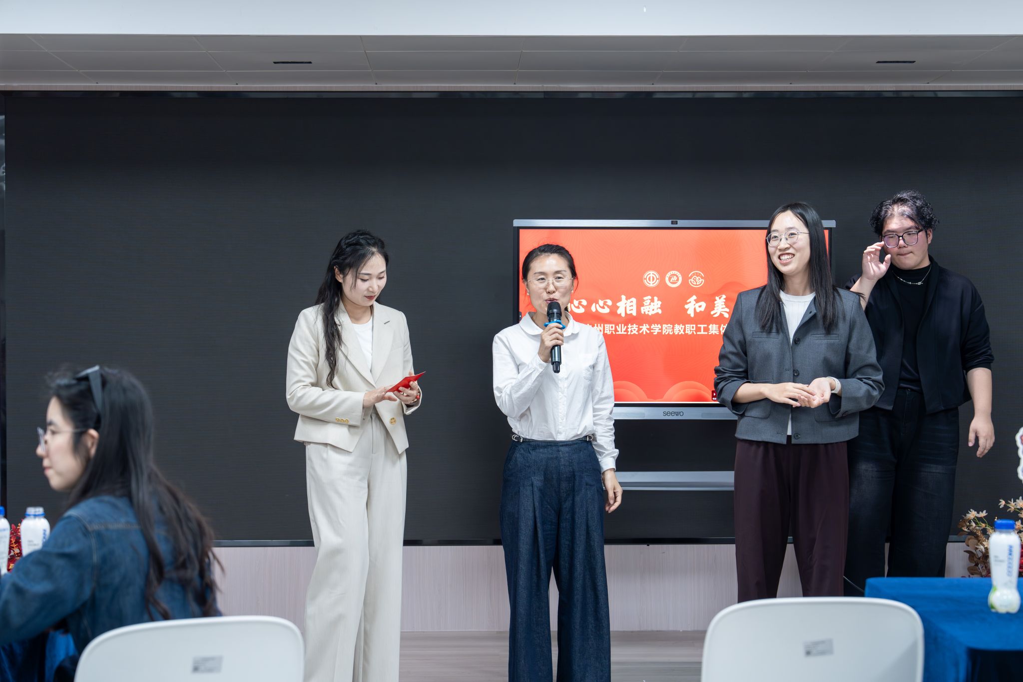 四月杭城春意浓,桃李芬芳满校园。4月16日,杭州职业技术学院学生活动中心洋溢着欢声笑语,由校工会主办、生态健康学院分工会承办的“心心相融•和美驿家”四月集体生日会在此暖心举行。工会副主席叶青青与43名教职工寿星共聚一堂,共度温馨时刻。