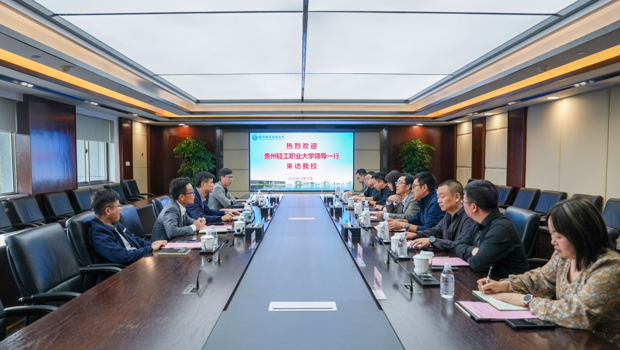 10月29日下午,贵州轻工职业大学校长杨天仪一行来访交流。我校校长黄兆信、副校长袁俊参加接待,并围绕“十五五”规划编制、教育教学、校企合作、内部治理进行了座谈交流。